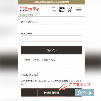 メールアドレス・パスワードを⼊⼒して「新規会員登録」をタップします。