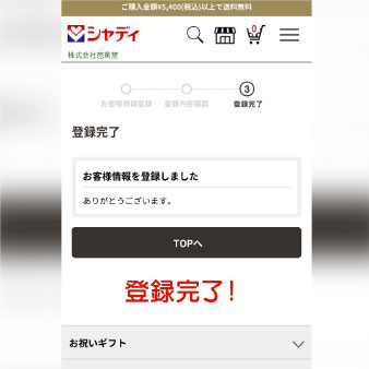 これで登録完了です。次回以降はログインしてお買い物をお楽しみください。
